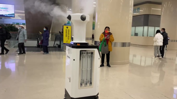 消毒機器人什么場合作用大,大型公共場所使用消毒機器人進行消毒