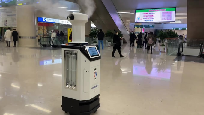 消毒機器人什么場合作用大,大型公共場所使用消毒機器人進行消毒