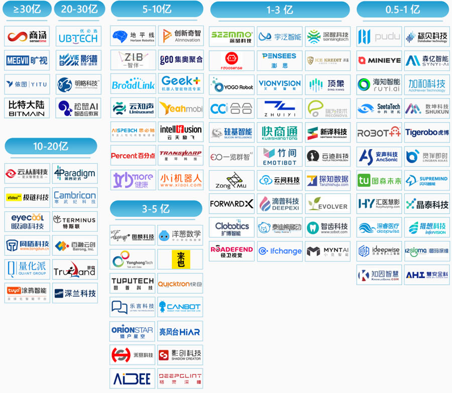 2019年巨頭企業(yè)名單:阿里巴巴,百度,字節(jié)跳動(dòng),滴滴,華為,海康威視,恒生電子,京東,科大訊飛,美團(tuán)點(diǎn)評(píng),美的,螞蟻金服,千方科技,騰訊,小米,東軟...
