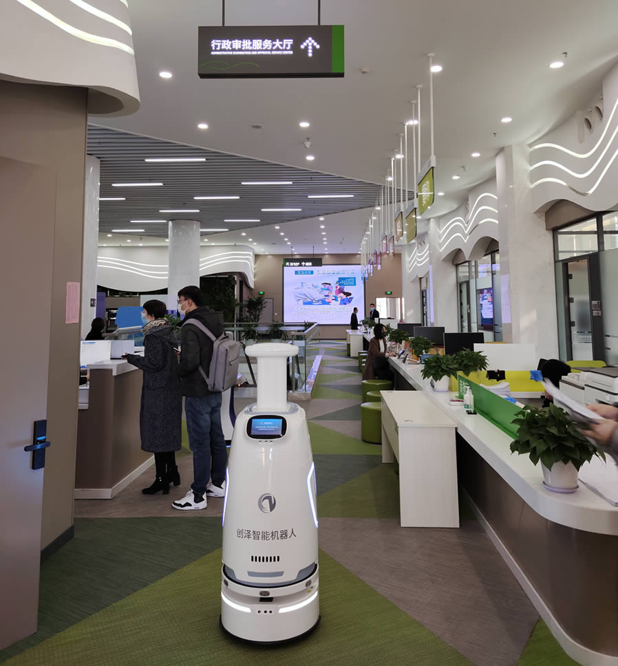 為進一步提升政務服務能力和水平,營造方便企業群眾辦事的溫馨環境,近日,政務服務大廳迎來創澤智能消毒機器人,為人民群眾提供一個安全保障的辦事環境。