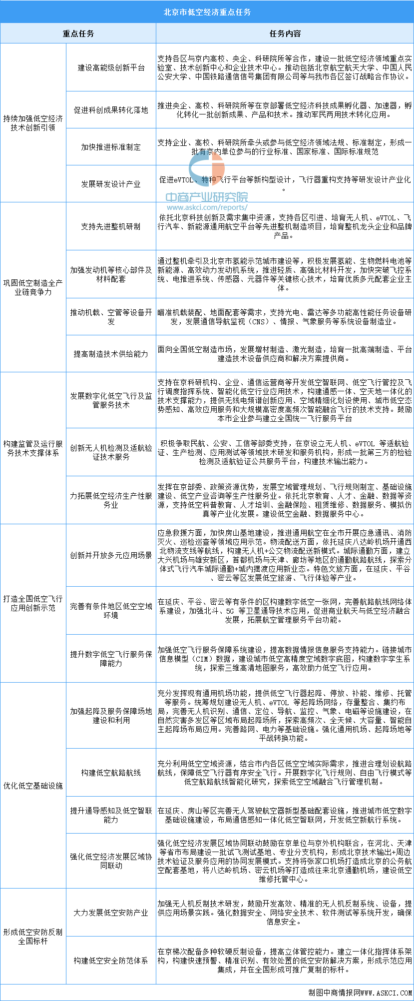 北京市目前從六方面提出20個重點任務。六個方面包括:持續加強低空經濟技術創新引L、鞏固低空制造全產業鏈競爭力、構建監管及運行服務技術支撐體系、打造全國低空飛行應用創新示范、優化低空基礎設施、形成低空安防反制全國標桿。
