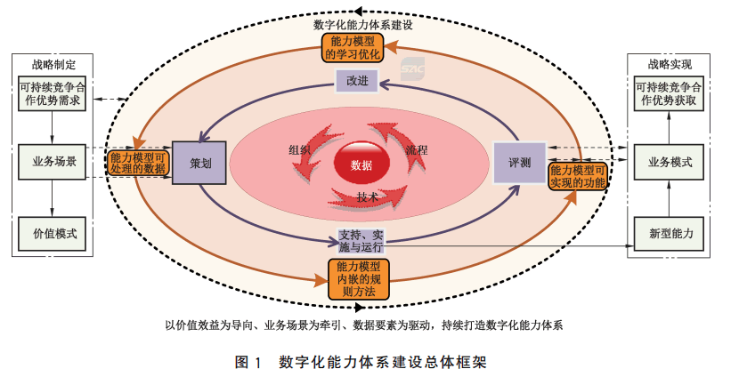 策劃(Plan):企業(yè)應(yīng)綜合研判可持續(xù)競爭合作優(yōu)勢、業(yè)務(wù)場景、價值模式等發(fā)展戰(zhàn)略相關(guān)關(guān)鍵需求, 圍繞價值體系的優(yōu)化、創(chuàng)新和重構(gòu),以業(yè)務(wù)場景為牽引,識別擬打造的數(shù)字化能力(體系),并從能力模型 可處理的數(shù)據(jù)、能力模型內(nèi)嵌的規(guī)則方法、能力模型可實現(xiàn)的功能、能力模型的學(xué)習(xí)優(yōu)化等方面進一步 明確相關(guān)數(shù)字化能力(體系)建設(shè)的具體需求。在此基礎(chǔ)上,根據(jù)業(yè)務(wù)場景和相關(guān)數(shù)字化能力(體系)建 設(shè)的需求,策劃形成涵蓋數(shù)據(jù)、技術(shù)、流程、組織等四要素的數(shù)字化能力(體系)建設(shè)系統(tǒng)性解決方案。