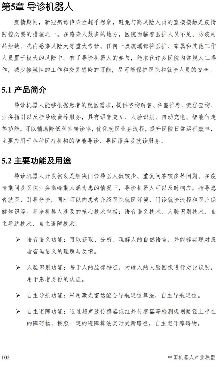 隨著自然語言處理、計算機視覺、多傳感器融合、大數據、AI 等技術的不斷發展,導診機器人的功能將會日趨完善,進一步協助各大醫院優化資源配比,提升醫療效率,真正滿足改善患者的就醫體驗的核心需求。例如:借助云平臺與?漆t療知識圖譜技術,機器人可與患者進行更加人性化、專業化的導診溝通,更準確地定位患者所問詢的病情;建立患者病例病史數據庫,為患者提供更加準確快速的分診服務,減少病人等待時間,優化醫院診療體驗;提升移動導航性能, 快速且實時更新動態場景地圖信息,做到零碰撞,無差錯地科室導引;連接醫療物聯網資源,實現跨區域導診信息共享,促進分級診療制度的推廣;具備典型病癥數據庫,通過檢測患者的體貌癥狀,判斷患者病癥傳染性;提G語音交互的抗環境干擾能力和準確性,可以更好的在醫院等環境嘈雜的應用場景下,為患者提供準確的導醫服務。
