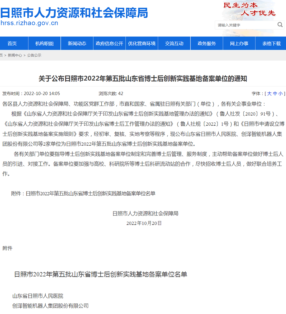 近日,日照市人力資源和社會(huì)保障局公示了2022年山東省博士后創(chuàng)新實(shí)踐基地?cái)M備案單位的名單,創(chuàng)澤集團(tuán)憑借優(yōu)秀的自主研發(fā)和創(chuàng)新能力,經(jīng)有關(guān)部門考察調(diào)研和專家評(píng)審,成功獲批山東省博士后創(chuàng)新實(shí)踐基地備案單位 。