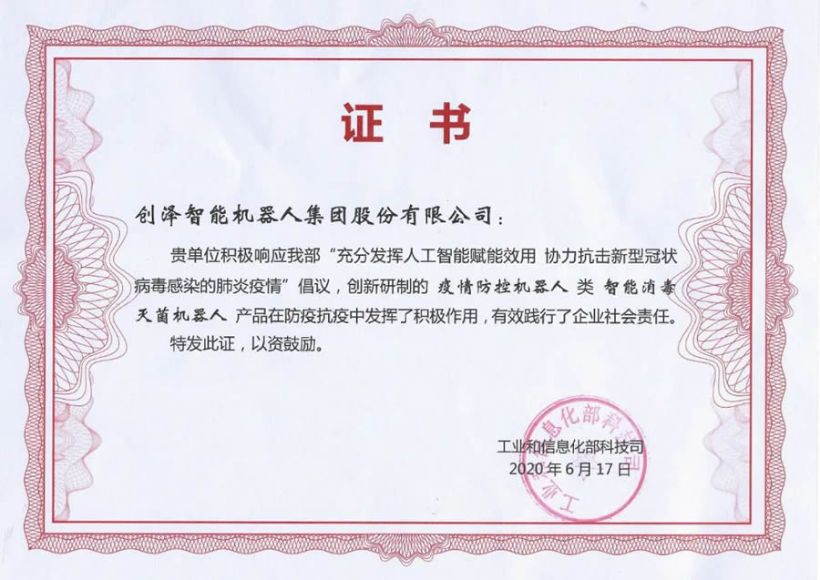 這已經不是創澤智能消毒機器人D一次入駐中國人民解放軍總醫院D一醫學中心了,早在2020年初新G疫情突襲而來時,為抗擊新G疫情,全國“AI+抗疫”全場景示范工程在中國人民解放軍總醫院D一醫學中心實施,創澤集團作為擔負國家賦予的智能公共服務機器人技術攻關使命的G新技術企業,以強烈的擔當精神臨危受命研發用于抗疫的消毒機器人。經過2個月的攻堅克難,創澤智能消毒機器人于2020年4月份在中國人民解放軍總醫院D一醫學中心上線,在該醫院門診大廳、發熱門診、檢驗科、感染科、住院部等多個場景廣泛應用,為疫情防控做出了突出貢獻。該應用場景入選《互聯網周刊》2020年人工智能案例TOP100、“北京國家人工智能創新應用先導區示范案例”,并榮獲工信部頒發的“抗疫標兵”榮譽稱號。