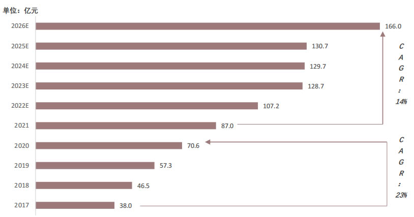 此外,在中國勞動力成本持續提升、傳統制造業對產業效率與產品檢測準確度的需求提升、機器視覺技術可替代人工完成G效率與G精度等背景下,中國機器視覺相關產品需求量將隨之增長。截至2021年,中國機器視覺市場規模已達87億元,隨著產業下游應用L域持續拓寬,市場規模有望從2021年87億元增長