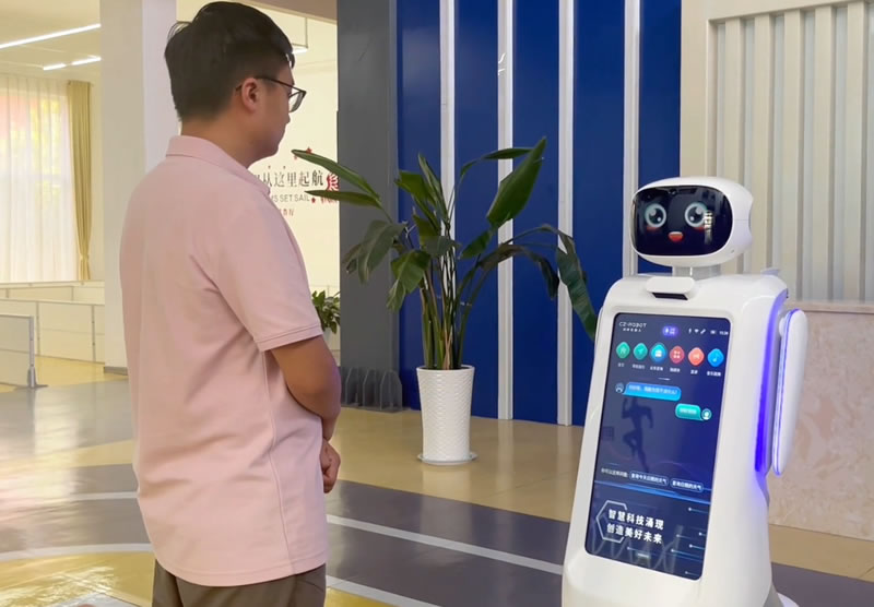 來(lái)到創(chuàng)澤公司前臺(tái),一名機(jī)器人接待員便主動(dòng)迎上前來(lái),詢問你的來(lái)訪目的,還可以為你做信息登記,前臺(tái)機(jī)器人可以變身前臺(tái)接待無(wú)接觸訪客邀約又具備變身行政助理的潛能