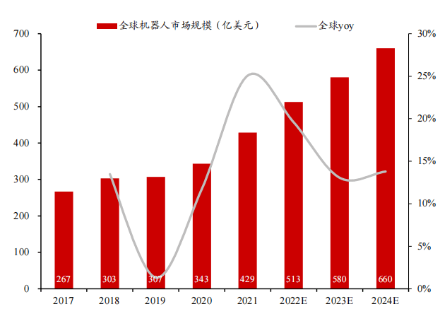 中國機器人2024年有望達251億美元市場規模,2020-2024年CAGR約22%。