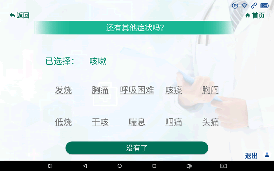 1.通過(guò)點(diǎn)擊首頁(yè)預(yù)檢分診按鈕或語(yǔ)音“預(yù)檢分診”進(jìn)入性別和年齡選擇頁(yè)面,通過(guò)點(diǎn)擊屏幕或直接語(yǔ)音如(30歲男性)選擇患者的性別和年齡,然后跳轉(zhuǎn)到癥狀或疾病選擇頁(yè)面;