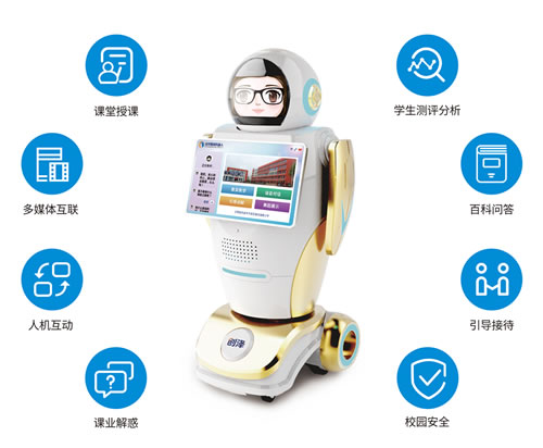 學校智能教育機器人正在課堂上與學生們一起上課。